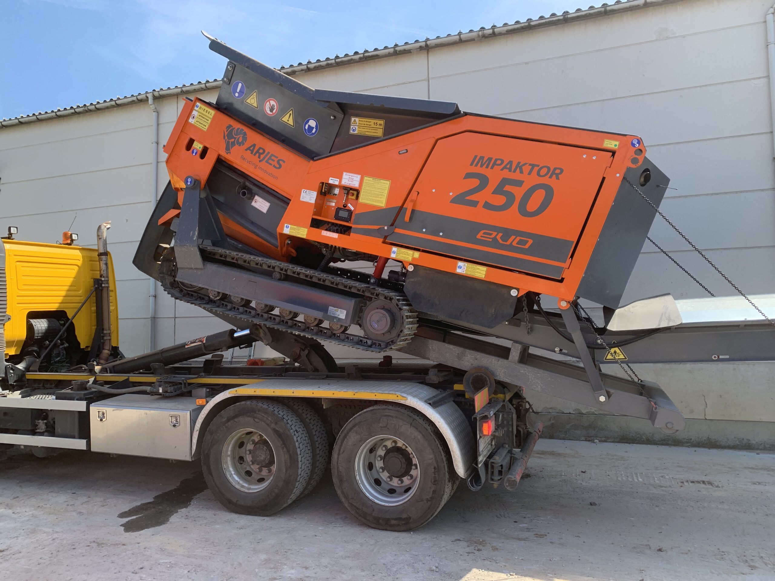 De werking van de Arjes 250 Impaktor is gebaseerd op een innovatief principe van schokbelasting. Het materiaal wordt geladen in de invoerbunker, waarna het door een robuuste roosterwals wordt gevoerd. Deze wals is voorzien van schokkettingen en slaglijsten die zorgen voor een intensieve impact op het materiaal.